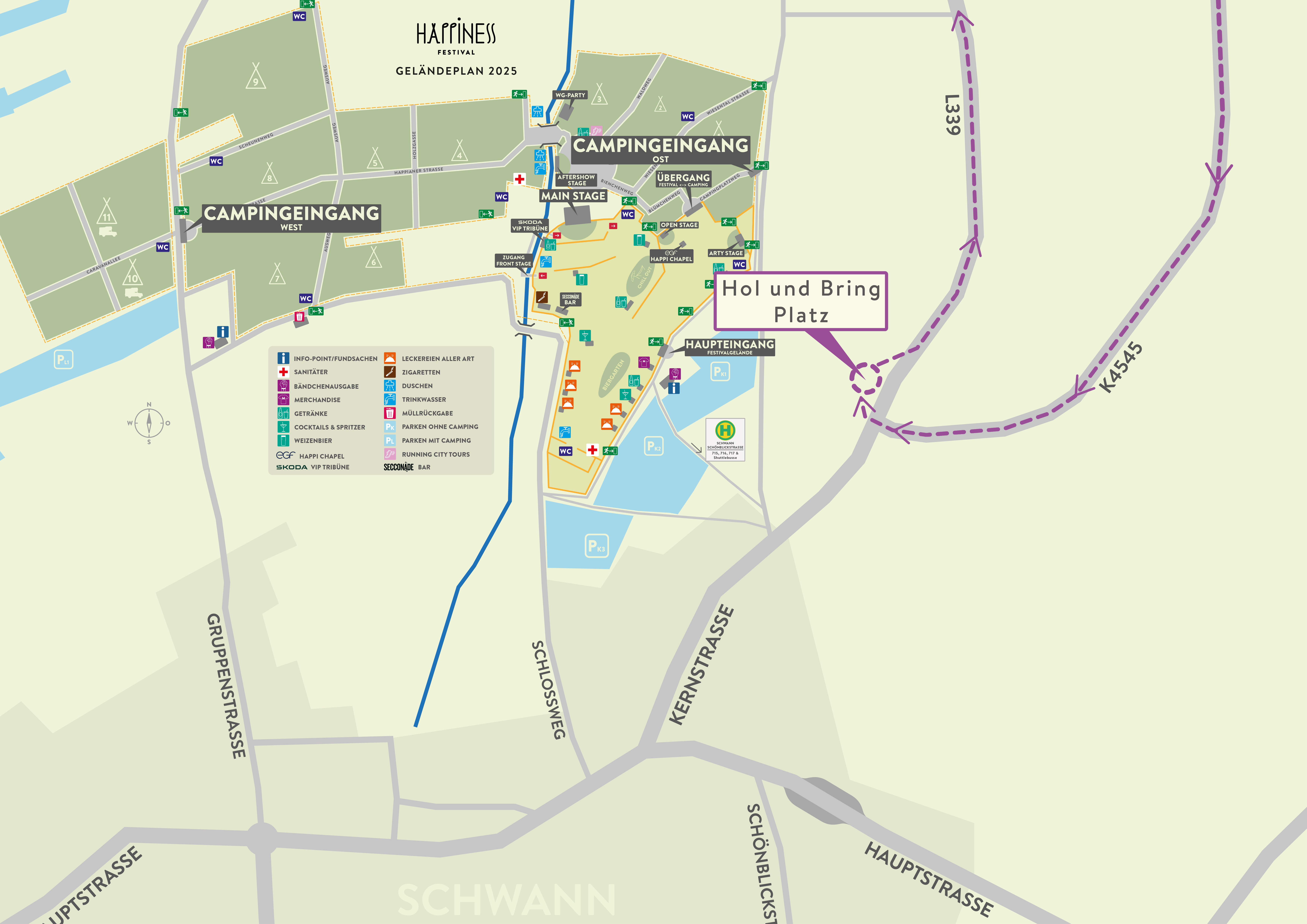 Wenn ihr mit dem Auto gebracht und abgesetzt werdet, also nicht bei uns parkt, folgt einfach der Veranstaltungsbeschilderung "Festival" und haltet dann nach der "Hol und Bring"-Beschilderung Ausschau.
